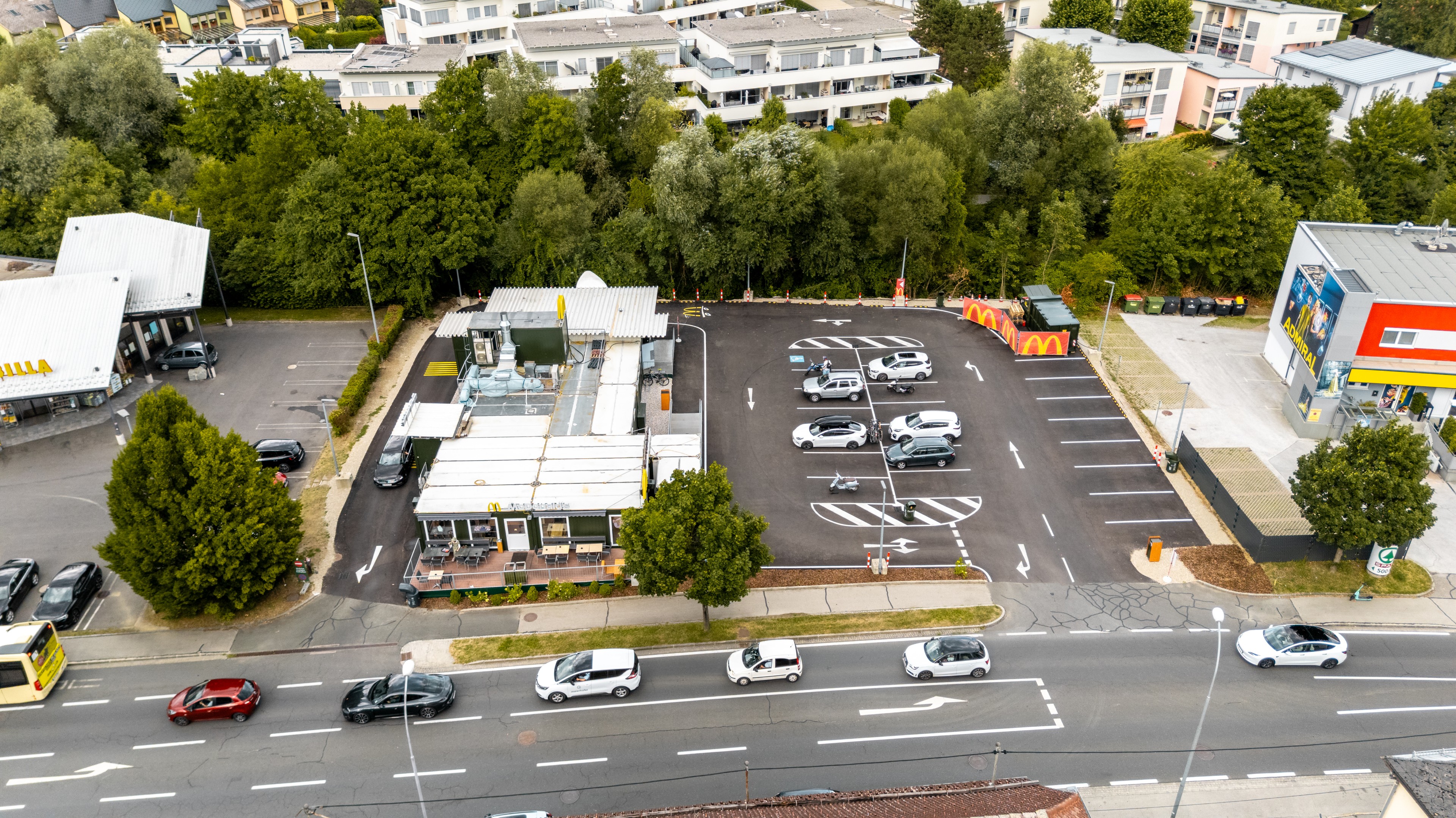 In der Feldkirchner Straße wurde die McDonald’s-Filiale abgerissen, um durch einen modernen Neubau ersetzt zu werden. Während der Bauzeit, die bis November 2025 andauern soll, sorgt eine temporäre Pop-Up-Filiale, auf einem nahegelegenen Grundstück der MID Bau GmbH, für Ersatz. McDonald’s bietet dort einen vollständigen Restaurantbetrieb mit 23 Parkplätzen, Terrasse und einem McDrive an.